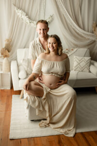 En tant que photographe grossesse dans l’Oise, je vous accueille dans mon studio à Biermont, proche de Compiègne, pour créer des images douces, naturelles et intemporelles.