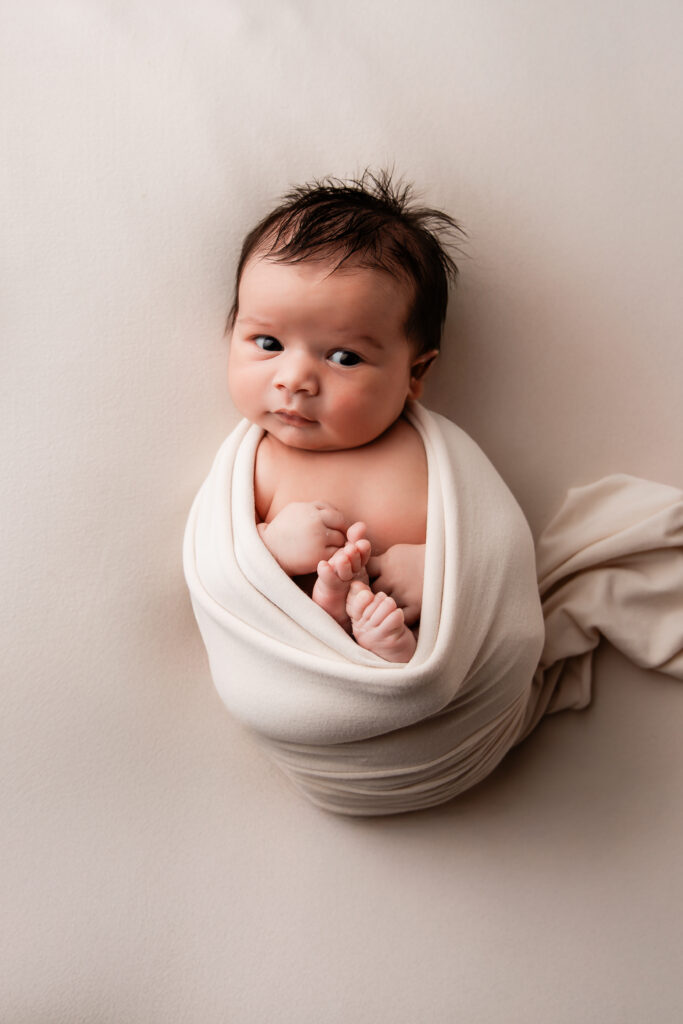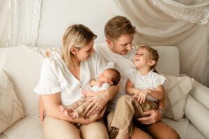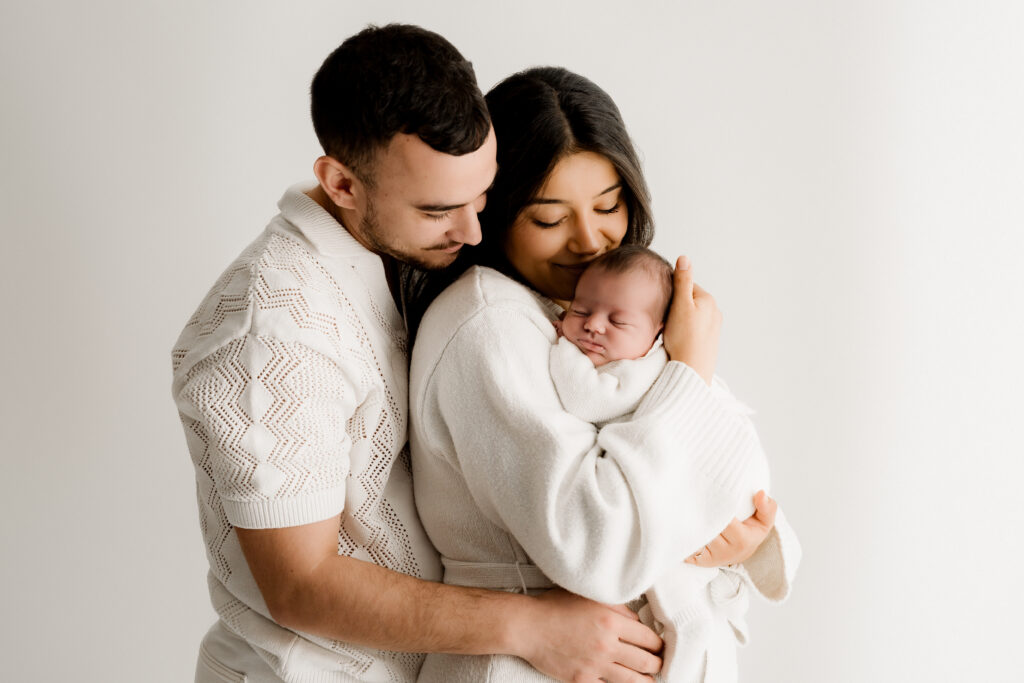 Le studio est chauffé à la température idéale afin que votre bébé puisse être photographié confortablement et en toute sécurité, même lorsqu’il est délicatement dévêtu.